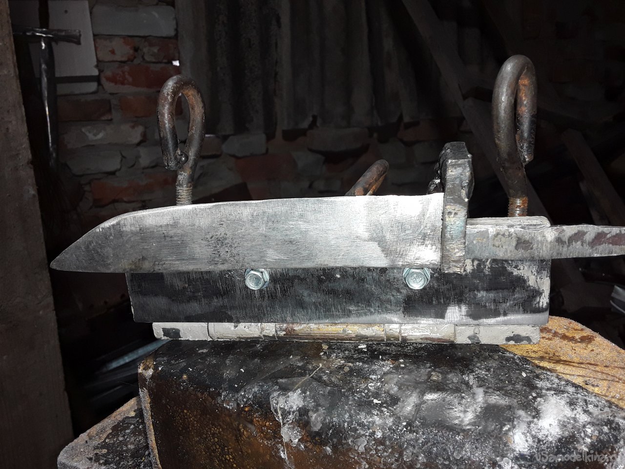 Приспособление «Бульдозер» Всем здравствуйте сегодня хочу вам рассказать про изготовление приспособления для выведения спусков на клинке в народе "бульдозер". Есть опытные мастера которые могут без всяких приспособлений формировать клин красивый и ровный, но я не из таких и именно по этому я нашел один легкий и