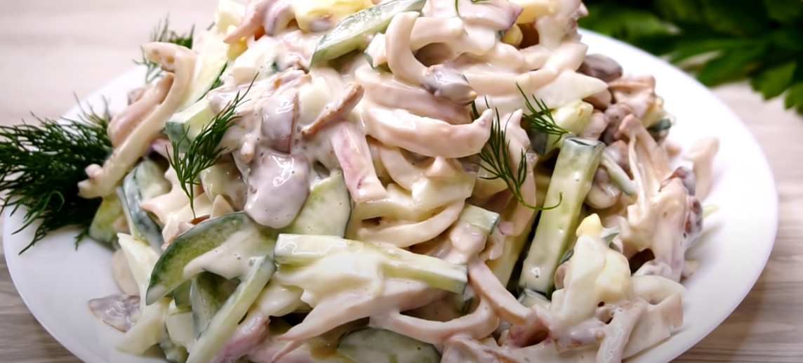 Салат "Свежесть". Один из лучших рецептов салата с кальмаром, который я знаю. Делюсь рецептом | Всё возможно - своими руками | Яндекс Дзен