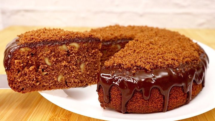 Шоколадно-ореховый пирог с глазурью. Я на него затратила всего минут 10-15!