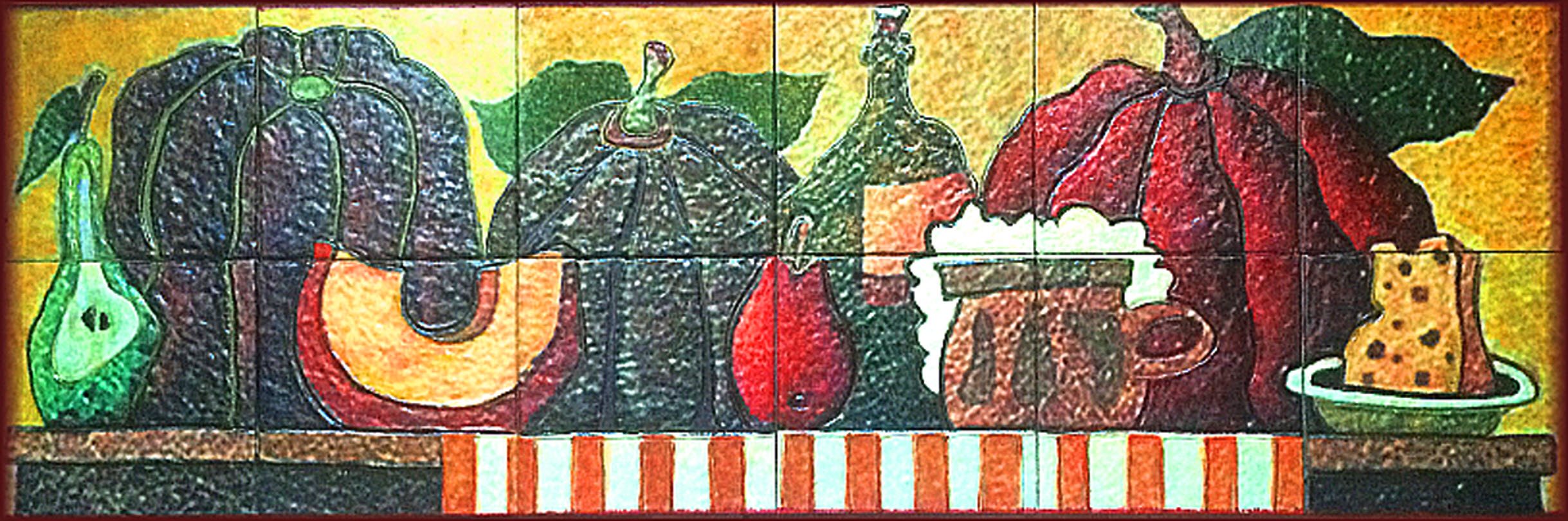 натюрморт фрукты, натюрморт овощи, натюрморт в интерьере, натюрморт на плитке, панно керамическое, панно из плитки, плитка ручной работы, натюрморт фрукты и вино