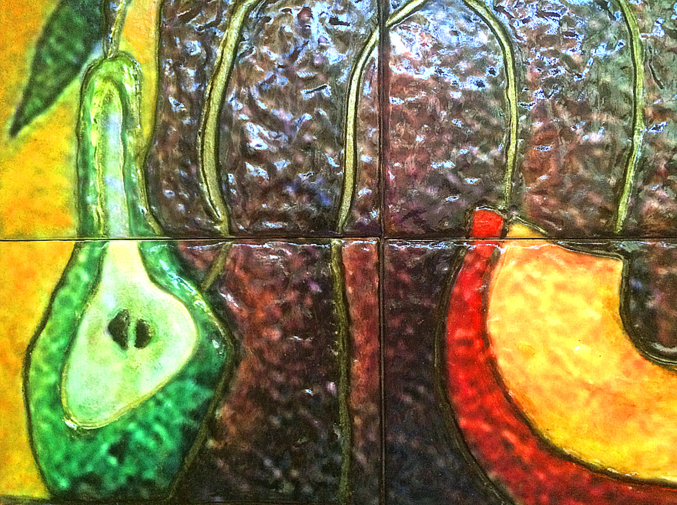 натюрморт фрукты, натюрморт овощи, натюрморт из плитки, плитка керамическая фрукты овощи, плитка ручной работы, плитка керамическая ручная работа, керамическое панно натюрморт