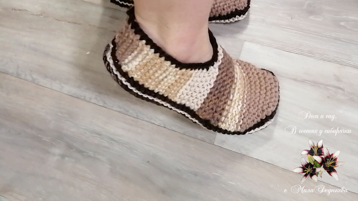 Как связать домашние тапочки спицами из остатков пряжи. Простой и быстрый способ | Вязание. Рукоделие. Мех. МилаФ | Яндекс Дзен