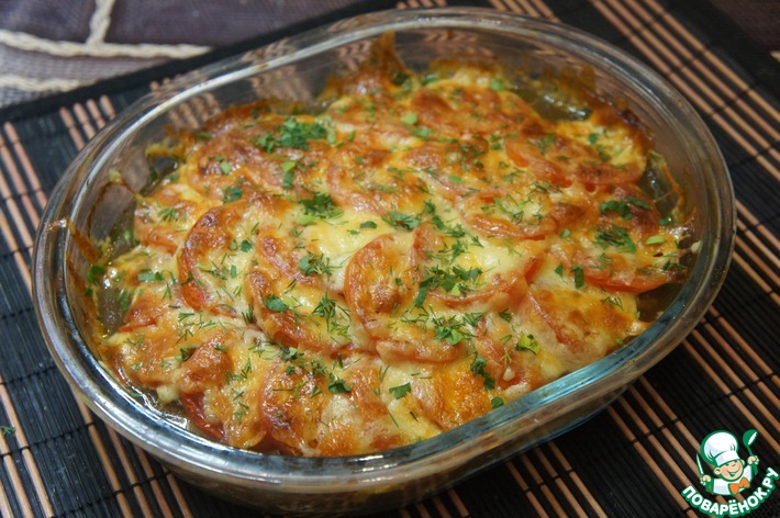 - Сверху засыпать тертым сыром и поставить в духовку.