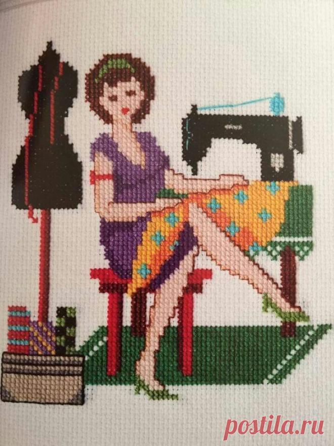 "Модистка". Схема к вышивке на тему "Парижанка". Схему сделала по фотографии готовой вышивки, которую нашла в интернете. Схему делала с помощью программы на сайте xfloss ru.