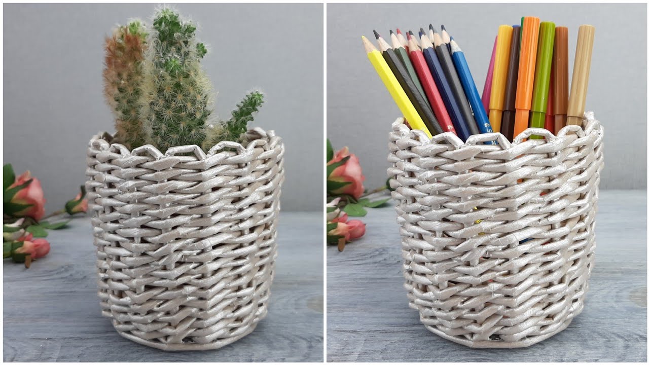 Супер Идея из Бумажных Трубочек Супер Идея из Бумажных ТрубочекТакая оригинальная корзинка из бумажных трубочек может быть отличным органайзером для фломестерив и карандашей, или стать крас...