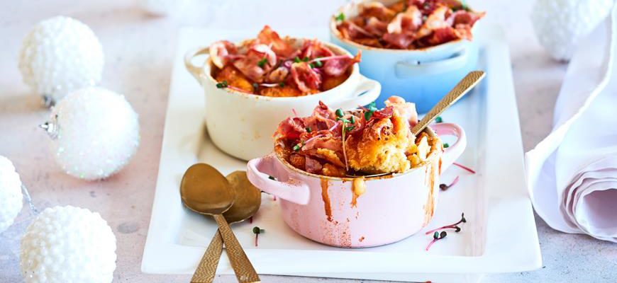 Сырный хлебный пудинг с беконом и луком - Образованная Сова