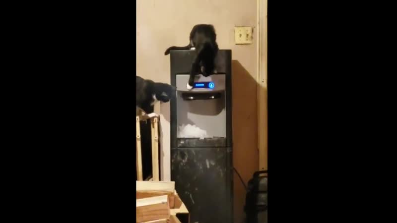 Котики заинтересовались машиной для изготовления льда))))