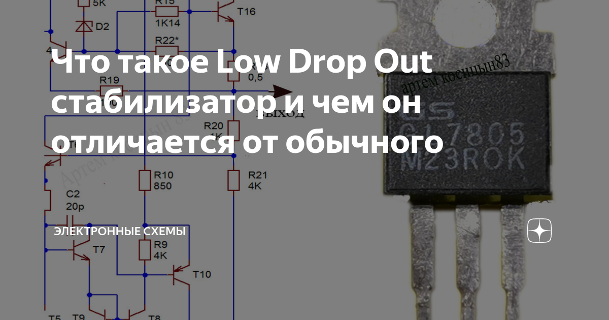 Что такое Low Drop Out стабилизатор и чем он отличается от обычного Известные линейные стабилизаторы напряжения типа 7805 и подобные,имеют один существенный недостаток-они сильно нагреваются из-за большого падения напряжения на них,особенно если нагрузка ток будет потреблять максимальный.Этот недостаток вызван тем,что применяются в качестве регулирующего элемента биполярные транзисторы.На фото схема линейного