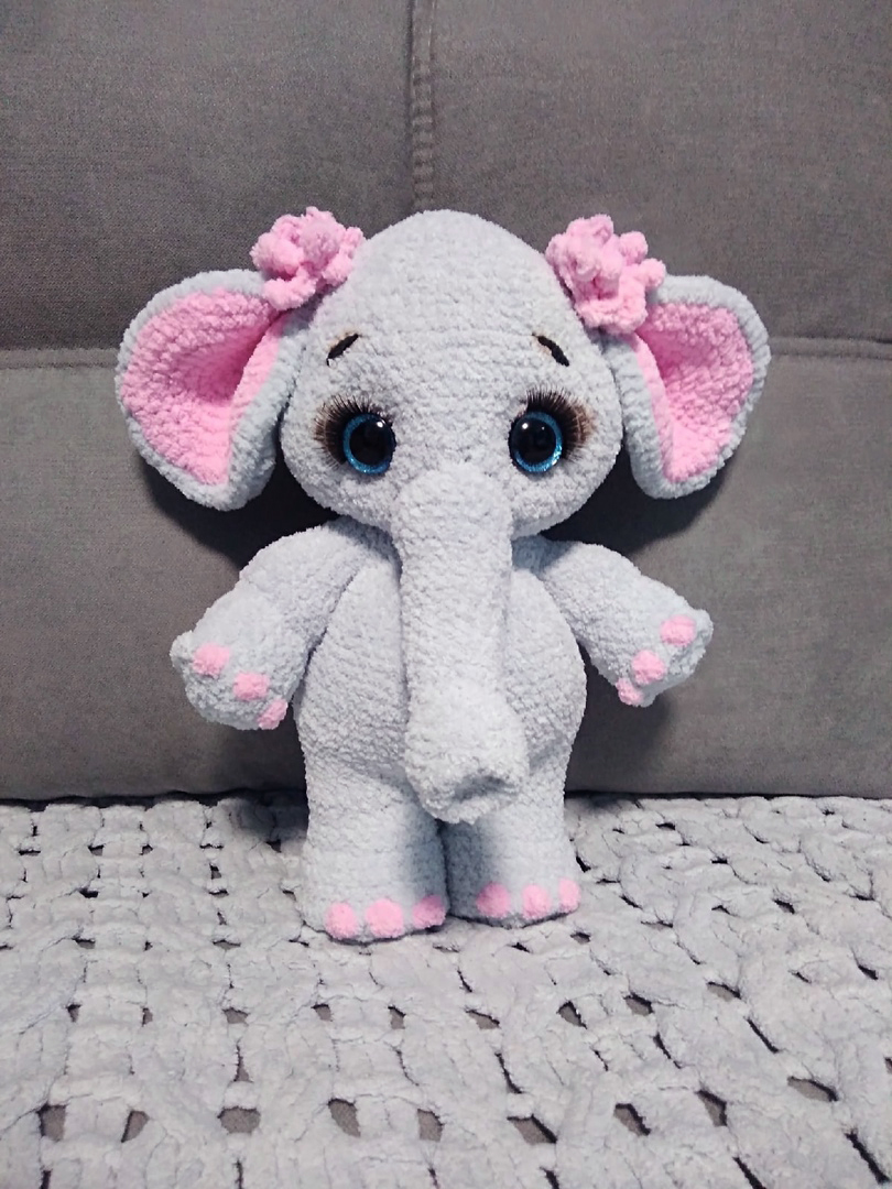 PDF Слоняша Дуняша крючком. FREE crochet pattern; Аmigurumi animal patterns. Амигуруми схемы и описания на русском. Вязаные игрушки и поделки своими руками #amimore - плюшевый слон, большой слонёнок из плюшевой пряжи, слоник, слоненок.