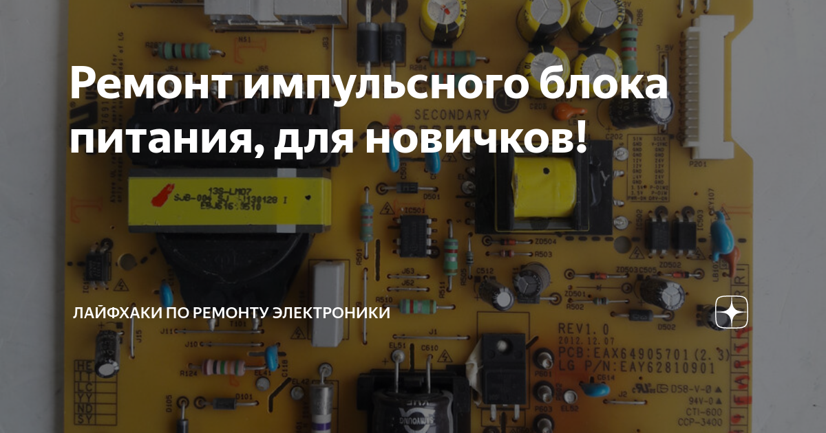 Ремонт импульсного блока питания, для новичков! Ремонт импульсного блока питания, для новичков! Всем здравствуйте! Рад снова приветствовать вас на страничке! Ну что-же сегодня у нас на ремонте блок питания от телевизора LG 47LA660. Диагноз -не включается. Визуально при разборе куча погорелых деталей в блоке питания. Начнём по порядку! У меня сегодня волшебный день который бывает раз в году ))) На ремонте было сразу два одинаковых телевизора ,