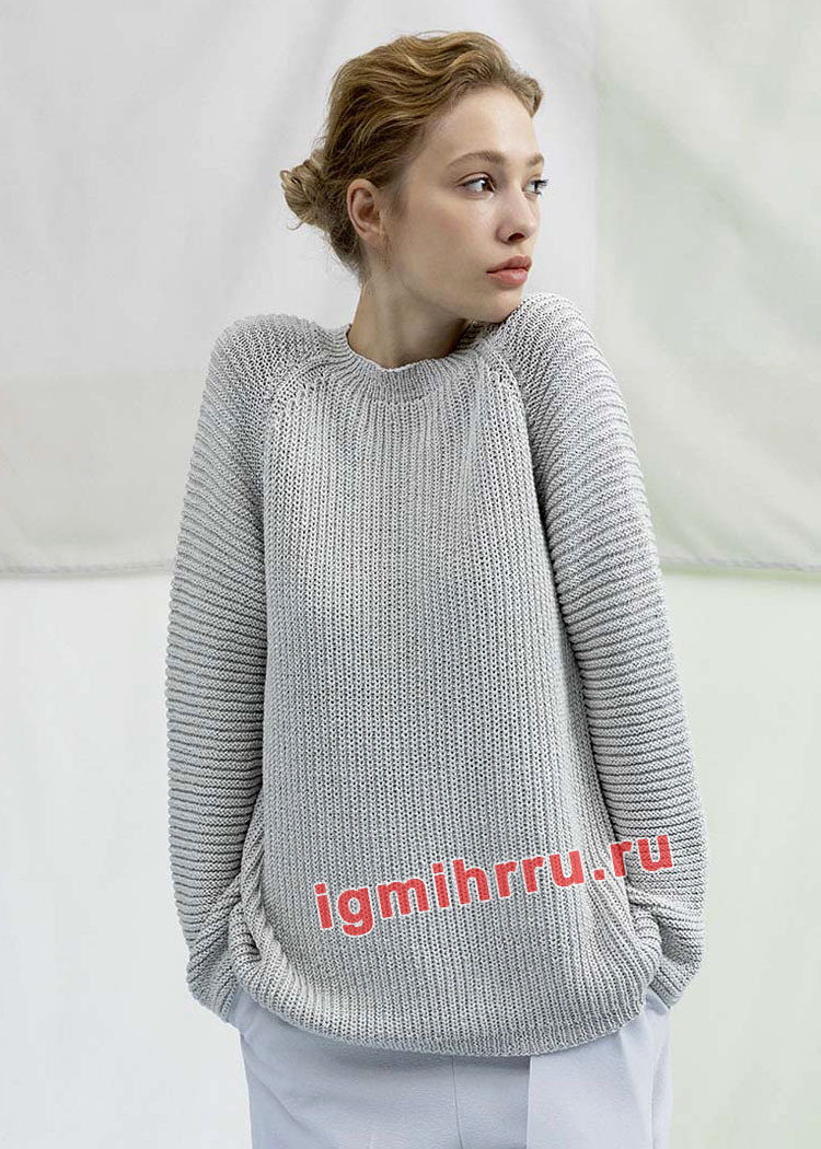 Шелковый пуловер с полупатентной резинкой и рельефным узором. Вязание спицами со схемами и описанием