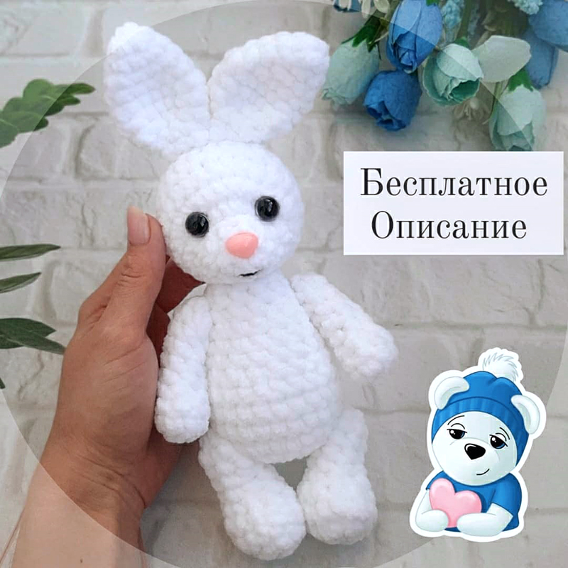 PDF Милый Зайчик крючком. FREE crochet pattern; Аmigurumi animal patterns. Амигуруми схемы и описания на русском. Вязаные игрушки и поделки своими руками #amimore - плюшевый заяц, зайчик из плюшевой пряжи, кролик, зайчонок, зайка, крольчонок.