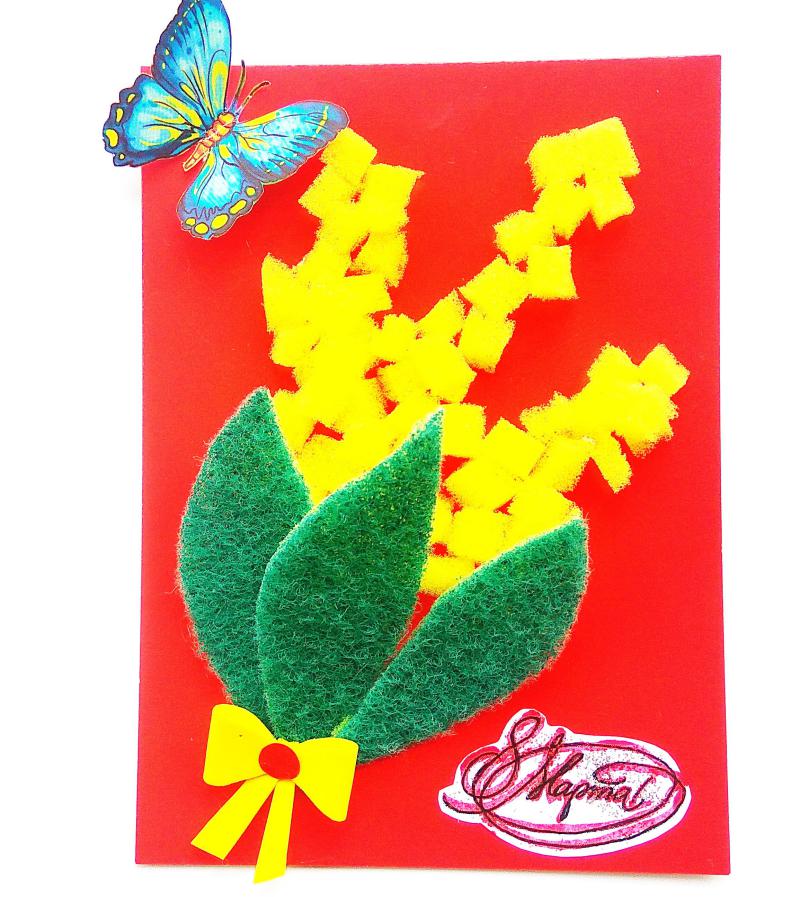 Поделки к 8 Марта в садик и школу. Открытки для мамы.