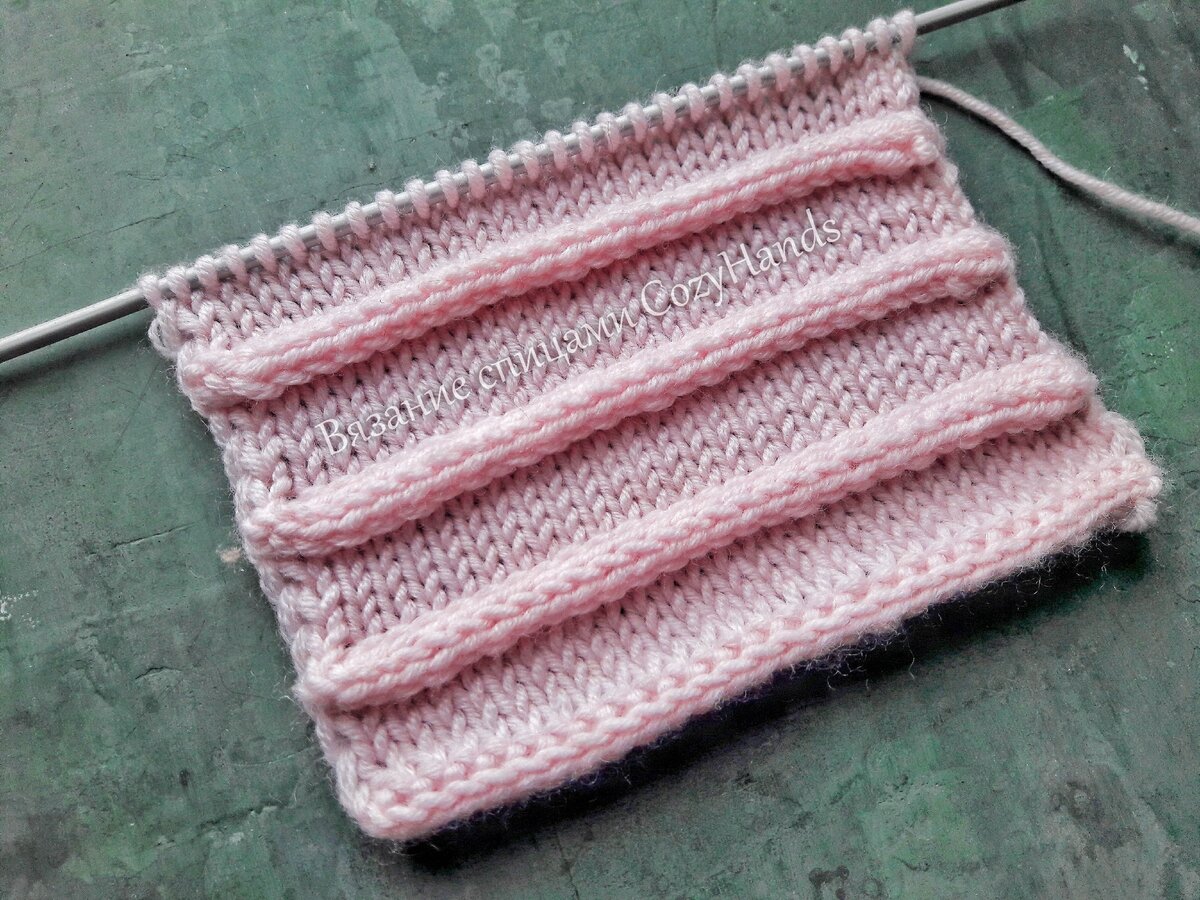 Ввязывание шнурка I-cord в полотно: объемные горизонтальные линии