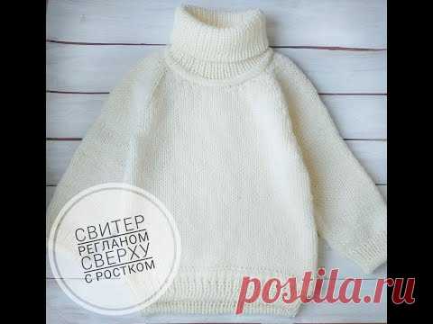 СВИТЕР РЕГЛАНОМ СВЕРХУ С РОСТКОМ , СПИЦАМИ ДЛЯ НАЧИНАЮЩИХ