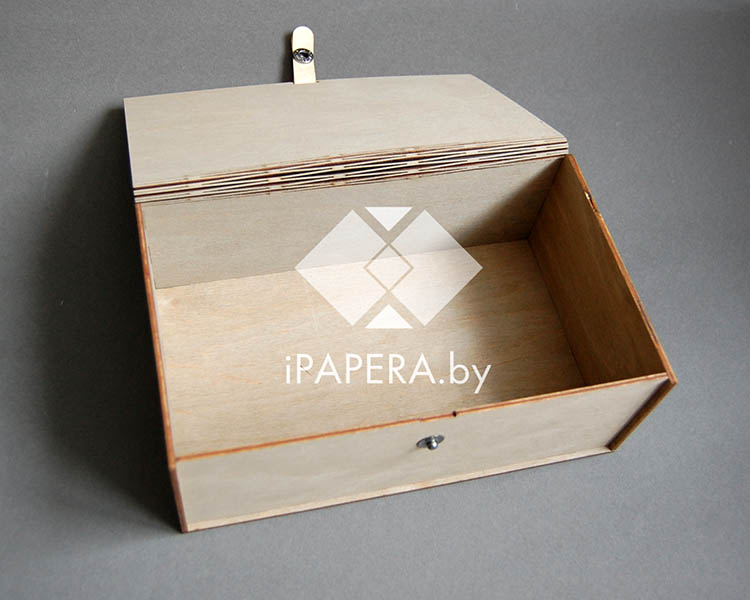 Деревянная коробка «Серая» с кнопкой (32x19x12 см) — iPapera