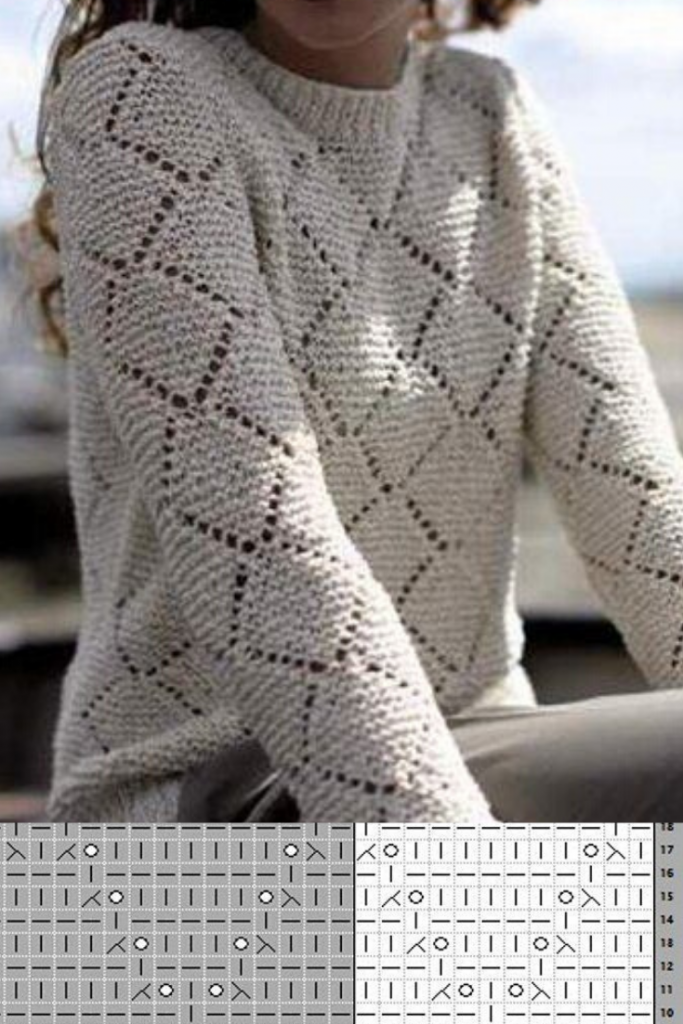 Красивый узор ромбы спицами для вязания жакета