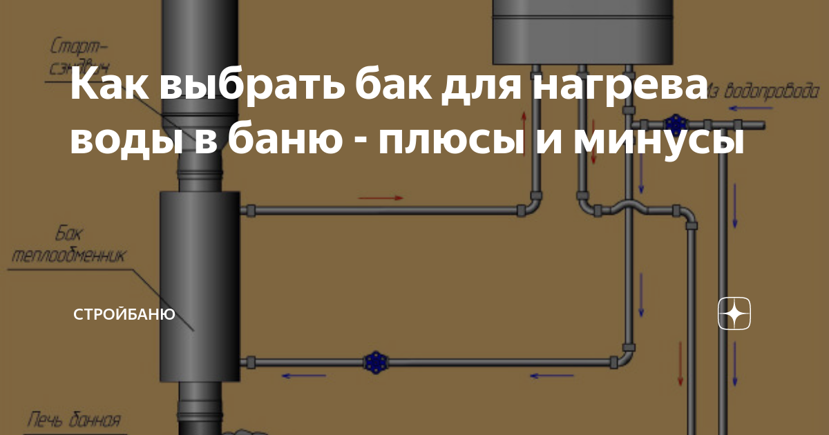 Как выбрать бак для нагрева воды в баню - плюсы и минусы Про виды баков для нагрева воды в бане и про так как бороться с закипанием воды было написано в недавней статье, но достаточно поверхностно, разберëм подробнее. И так есть три вида баков: 1. Бак на трубу самоварного типа 2. Выносной бак с теплообменником