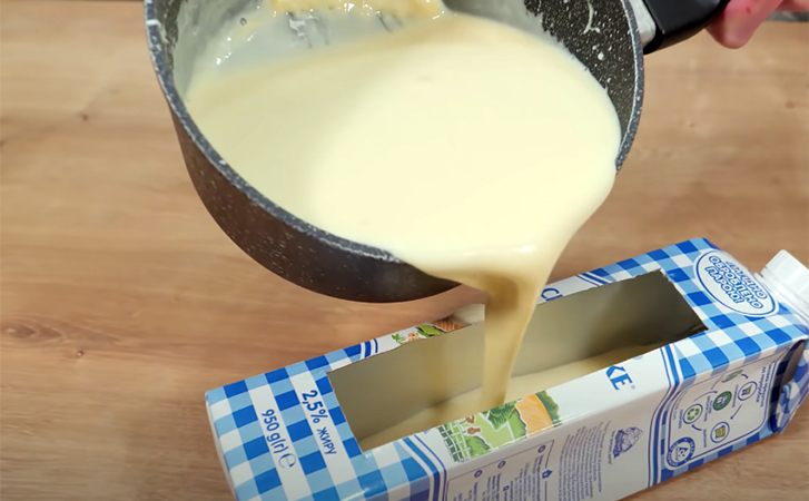 Смешиваем молоко и яйца, а потом замораживаем в коробке. За ночь получается десерт без духовки