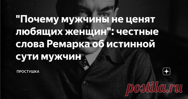 "Почему мужчины не ценят любящих женщин": честные слова Ремарка об истинной сути мужчин У российской писательницы Дарьи Донцовой есть такая фраза: