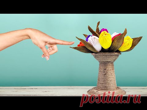 Flower Pot with Flowers | Tulip Flowers | Crepe Paper Flowers | Crafts Junction