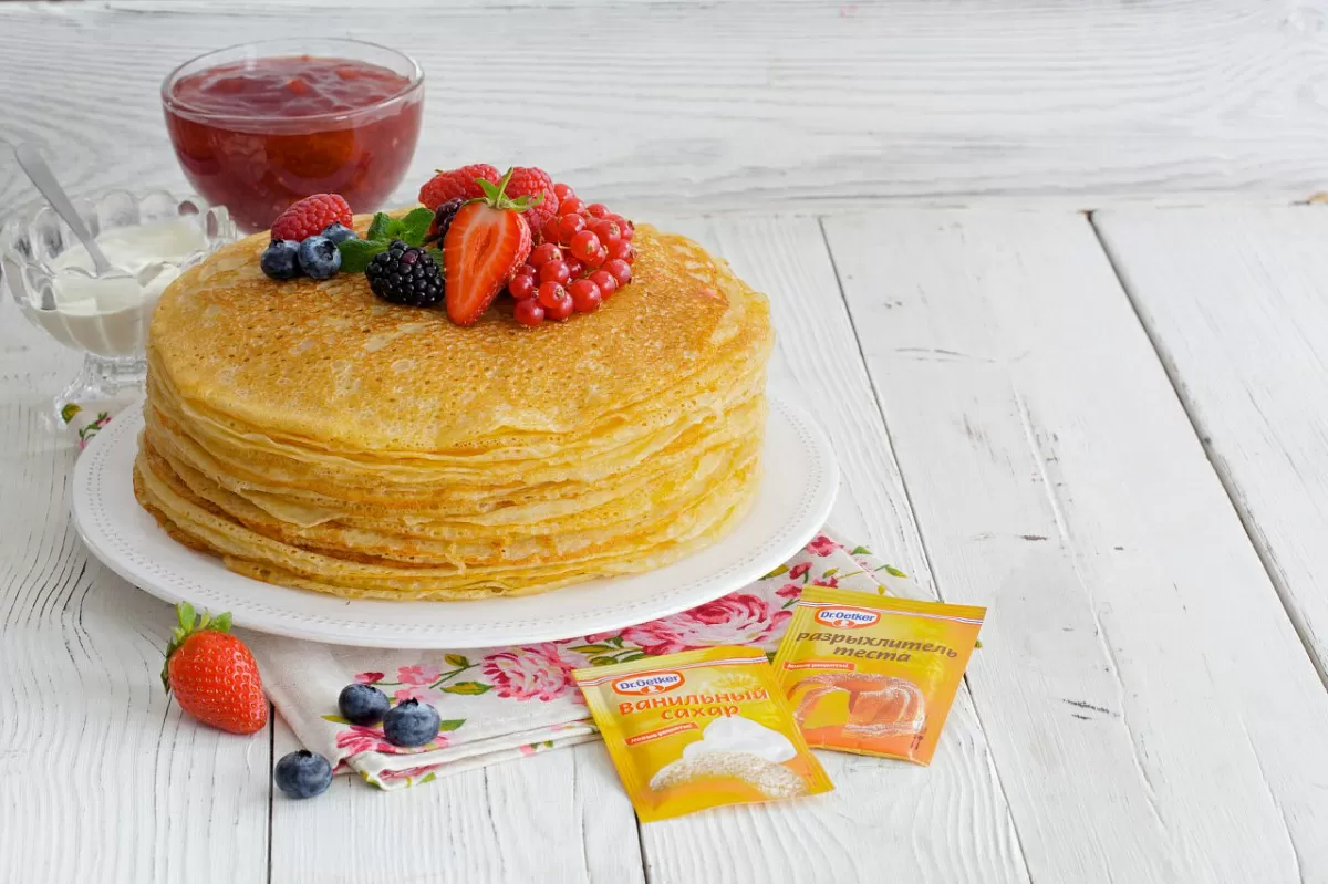 Ажурные блинчики на кефире пошаговый рецепт с фото на сайте академии выпечки Dr.Oetker