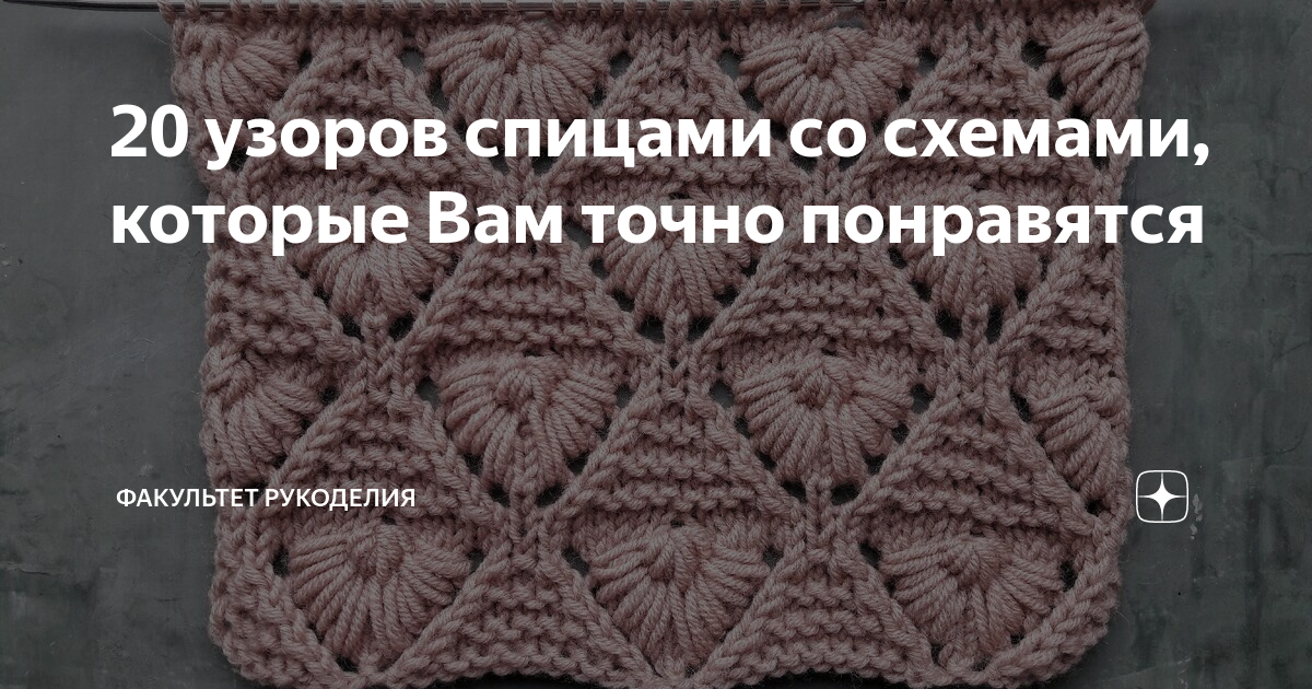 20 узоров спицами со схемами, которые Вам точно понравятся Всем привет! С Вами снова Юлия - автор проекта "Факультет рукоделия". Снова готова поделиться с Вами узорами и схемами для вязания спицами с Интернета для Ваших копилочек ;)