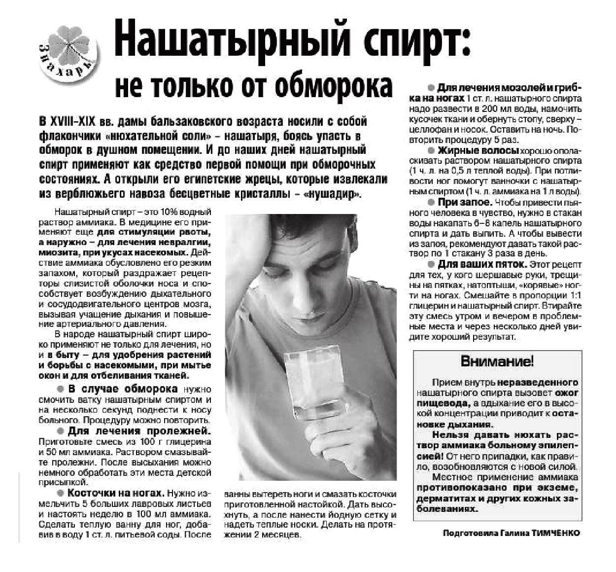 Нашатырный спирт лечит
