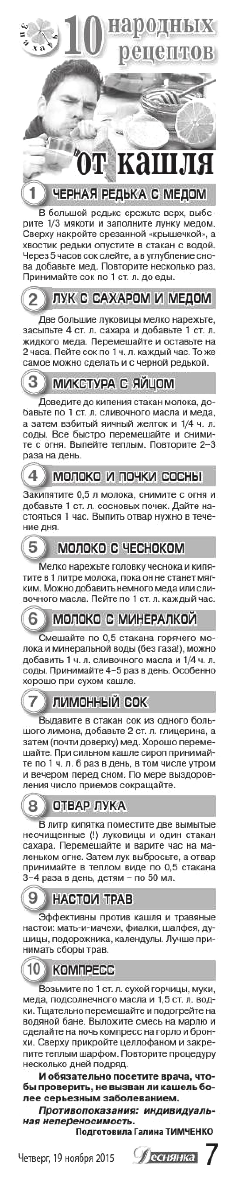 10 народных рецепта от кашля