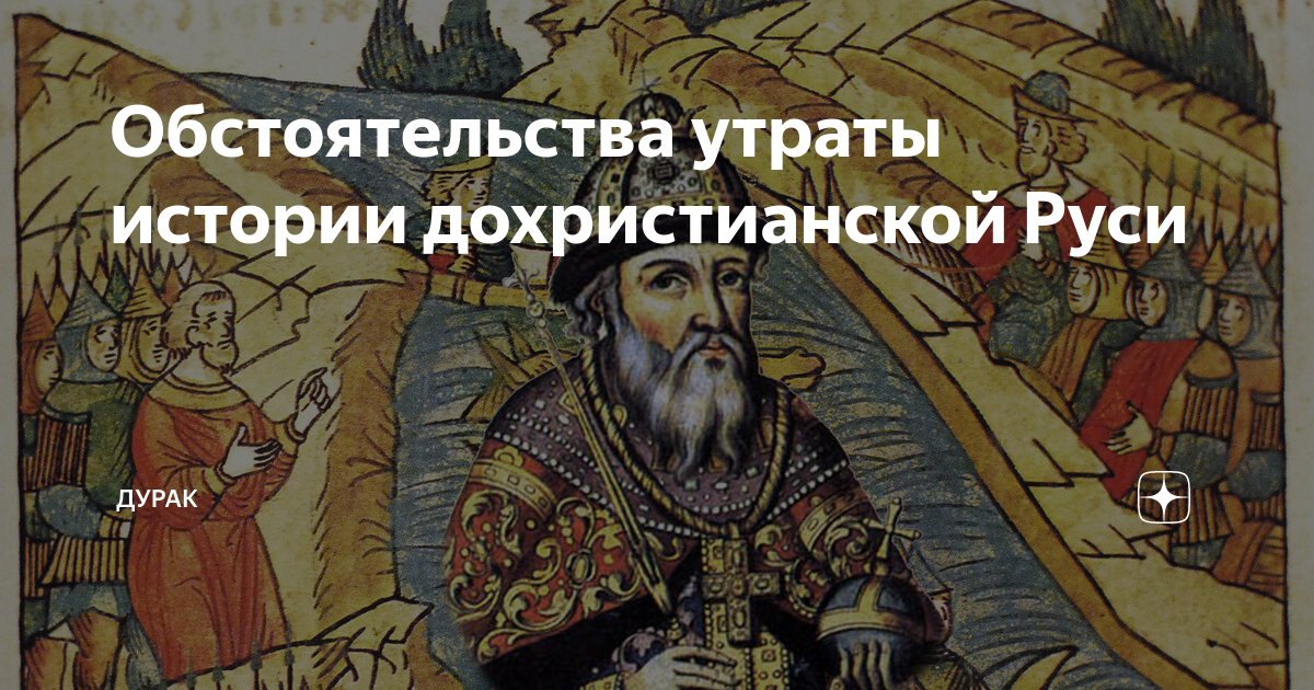 Обстоятельства утраты истории дохристианской Руси Дохристианская история Руси насчитывает не века, а тысячелетия. Однако достоверных письменных источников той далекой эпохи не сохранилось. Скорее всего, они были полностью уничтожены в ходе утверждения новой религии и новой морали.