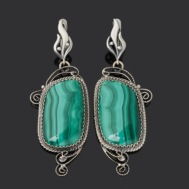 4090 р-Купить Серьги малахит Конго (нейзильбер, биж. сплав) Доставка по всему миру! Заходи и покупай сейчас! | Интернет-магазин Минерал Маркет - 410813