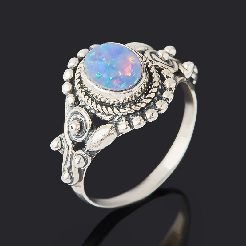 4.590 р-Купить Кольцо опал благородный голубой (дублет) Эфиопия (серебро 925 пр. оксидир.) размер 17,5 Доставка по всему миру! Заходи и покупай сейчас! | Интернет-магазин Минерал Маркет - 354111