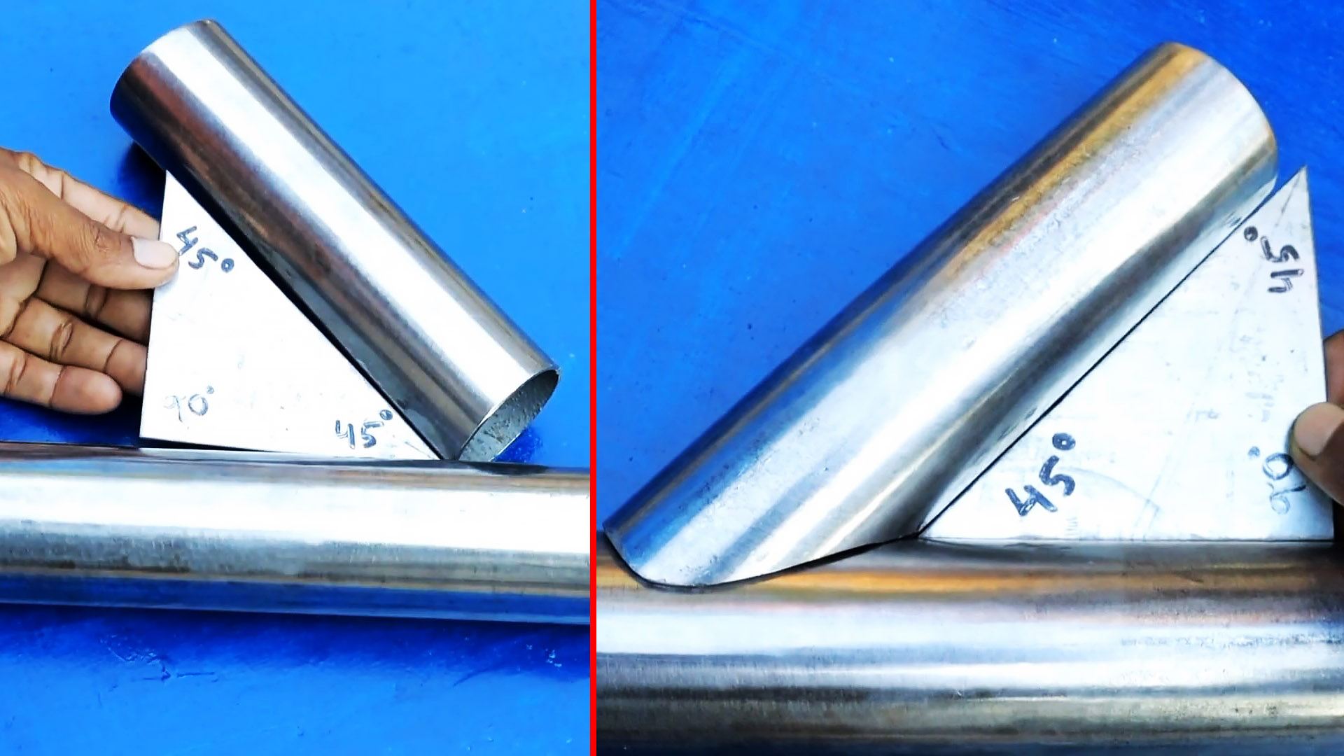 Как куском бумаги идеально разметить торец трубы под врезку 45 градусов Чтобы вварить одну трубу во вторую под углом 45 градусов, нужно сделать вогнутую подрезку торца. Разметка под нее очень сложная. Предлагаемый способ позволит сделать ее ровно и максимально быстро. Что потребуется: линейка; маркер; бумага; ножницы. Процесс разметки трубы Необходимо измерить диаметр