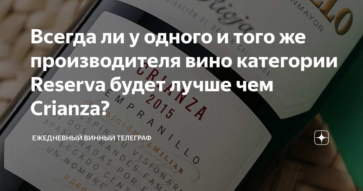 Всегда ли у одного и того же производителя вино категории Reserva будет лучше чем Crianza? Скажите, Crianza заведомо менее насыщенное/полнотелое вино по сравнению с Reserva или Gran Reserva у одного и того же производителя? Crianza какого винтажа оптимальна потреблению в 2021 году? В этом вопросе речь у нас идет об испанских винах. Испанское винное законодательство почти для всех регионов четко фиксирует значение сроков выдержки вина на винодельне до поступления его в продажу и при