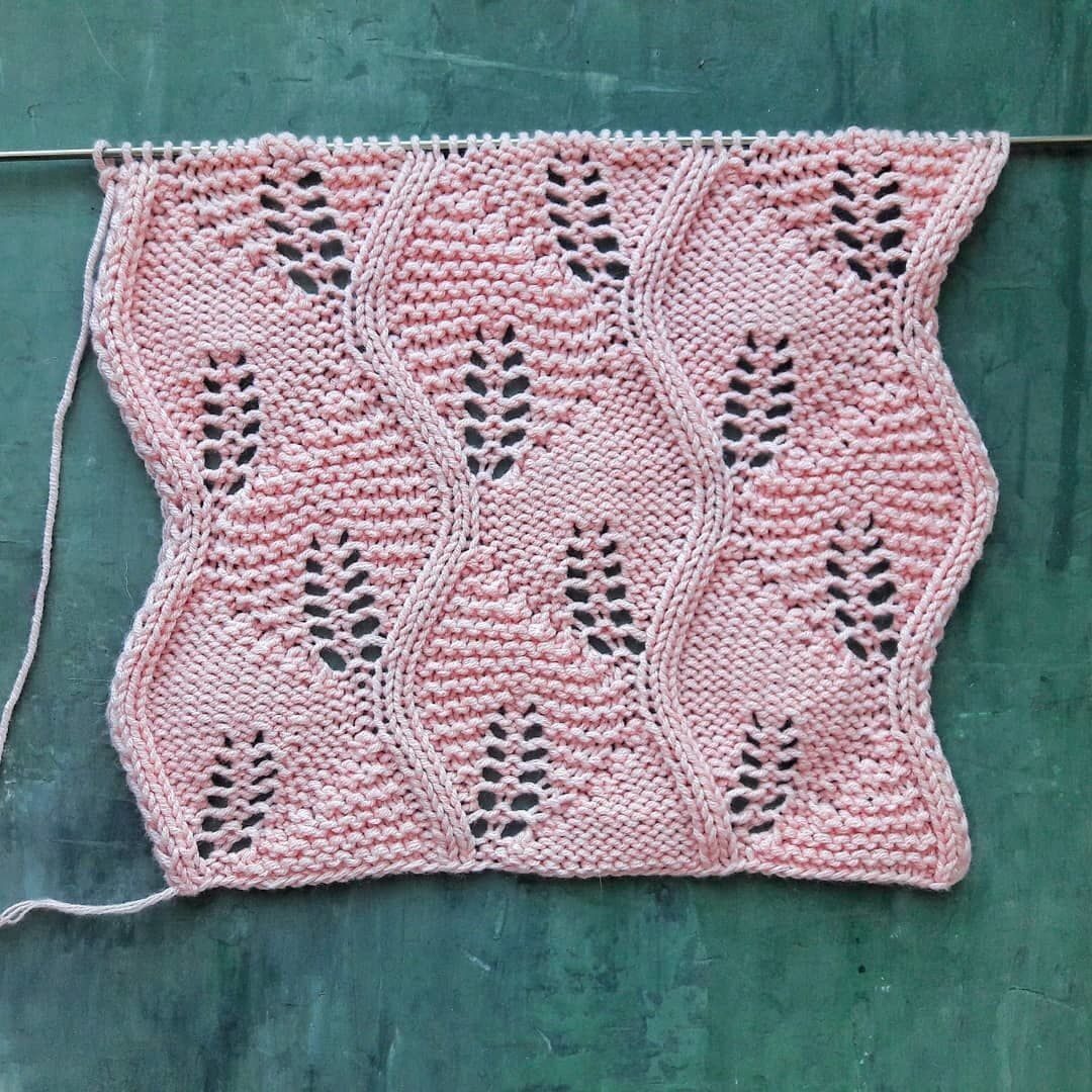 Вязания ажурного узора Листья спицами. Раппорт узора состоит из 32 петель и 32 рядов. Количество набранных петель должно быть кратно 32. При вязании поворотными рядами прибавить еще 2 петли для симметрии и 2 кромочные петли. Описание вязания узора Листья поворотными рядами: 1 ряд (лицевой): кром.п., * 2 изн.п., 1 лиц.п., 12 изн.п., 1 лиц.п., 2 изн.п., 14 лиц.п., * 2 изн.п., кром.п. 2, 4, 6, 8, 10, 12, 14, 16, 18, 20, 22, 24, 26, 28, 30, 32 ряд (изнаночный): кром.п., * ...