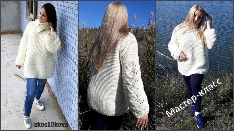 Свитер Оверсайз. Размер 44-50 Вяжется на одном дыхании! Мастер-класс