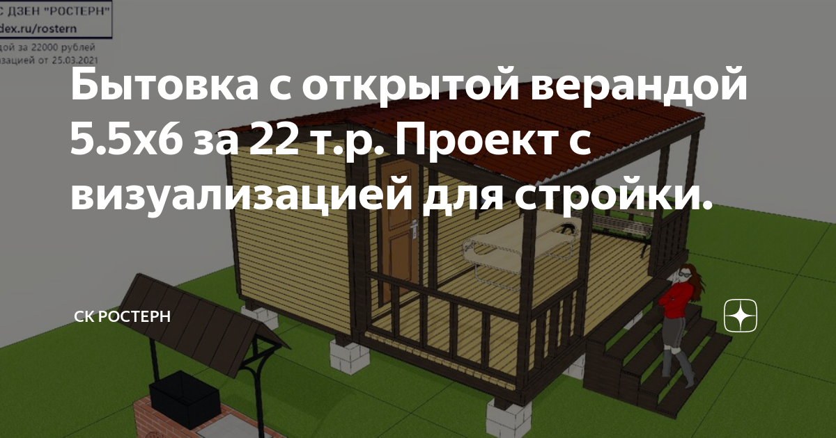 Бытовка с открытой верандой 5.5х6 за 22 т.р. Проект с визуализацией для стройки. Приветствую всех подписчиков и новых читателей нашего канала.