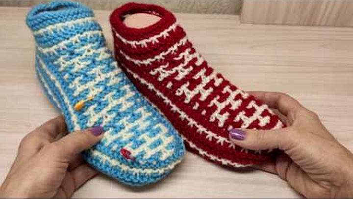 ТАПОЧКИ-СЛЕДКИ СПИЦАМИ на 2 спицах 35 и 38 размеры. Вяжем вместе.