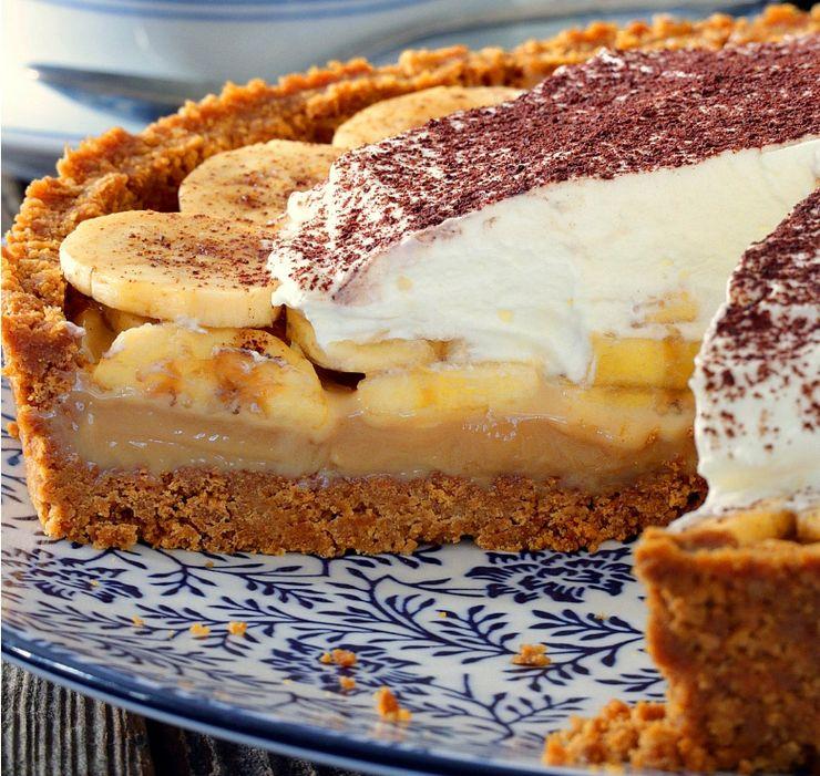 Баноффи пай - рецепт английского торта без выпечки - Пошаговые рецепты без мяса, без дрожжей, без муки, без яиц Английский классический пирог баноффи (Banoffee)! Восхитительно слоеный десер: хрустящее основание, варенная сгущёнка и нарезанные спелые бананы, покрытые пушистыми взбитыми сливками, посыпанными какао-порошком.