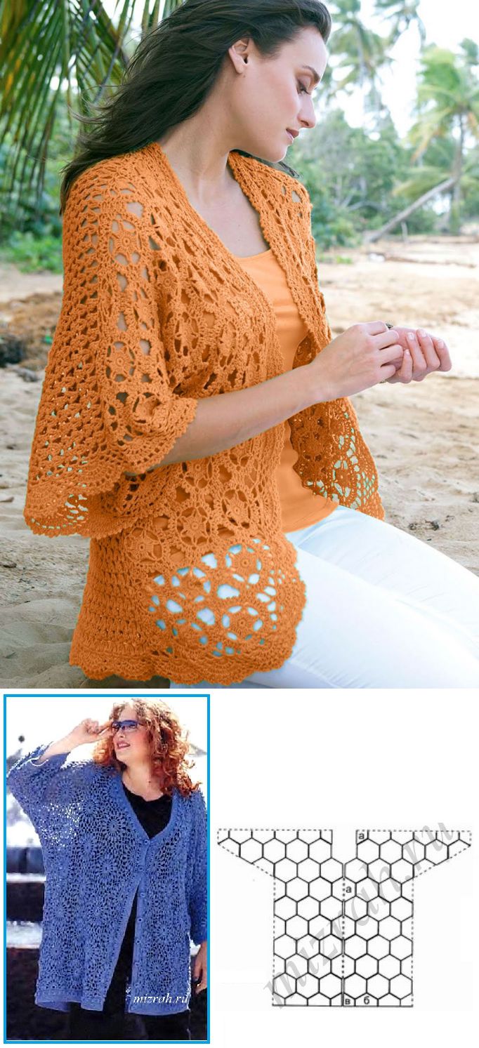 ЖАКЕТ-КИМОНО КРЮЧКОМ.