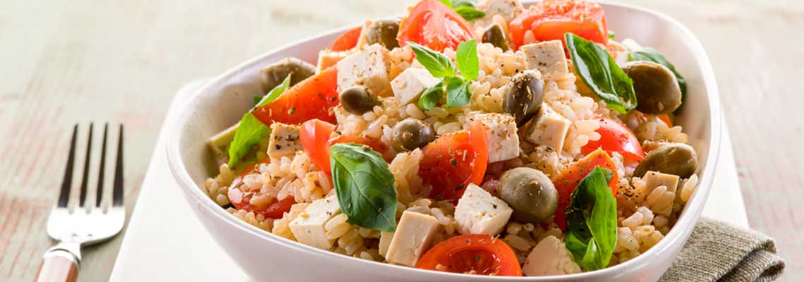 Овощной салат с рисом и сыром тофу • Рецепт Восхитительно вкусный и ароматный овощной салат с рисом и сыром тофу. Приготовьте очень сытный салат с помидорами, капустой брокколи, болгарским сладким перцем, оливками и имбирем.