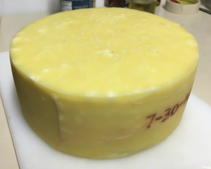 Когда я делаю такой сыр, я обычно делаю сыр большего размера. Эти виды сыра часто весят от 60 до 110 фунтов и более. Традиционно их делали большими, потому что их делали в горах и либо возили рабочими обратно в долину как единый сыр, либо упаковывали парами на лошадях, мулах или ослах для поездки. Для этих поездок лучше подходил более крупный и сухой сыр.