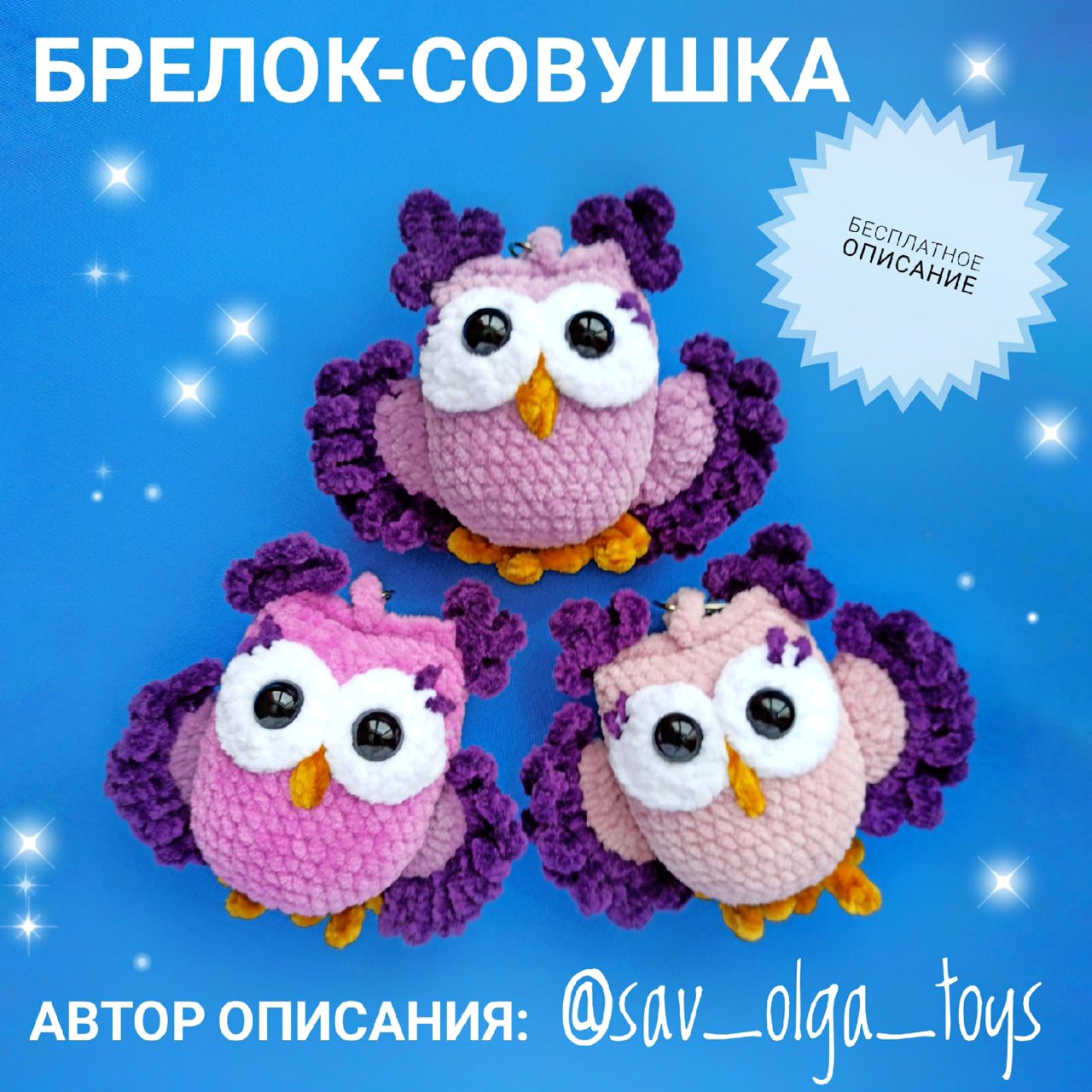 PDF Брелок Совушка крючком. FREE crochet pattern; Аmigurumi animal patterns. Амигуруми схемы и описания на русском. Вязаные игрушки и поделки своими руками #amimore - плюшевая сова, маленькая совушка из плюшевой пряжи, совёнок, птица, птичка.