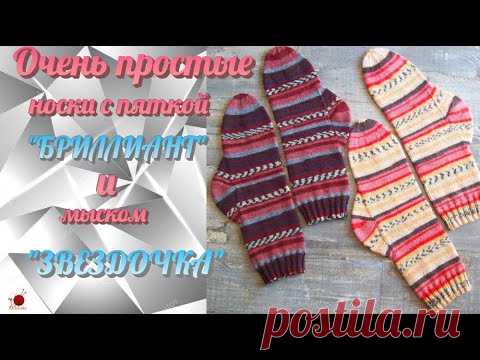 Очень простые носки с пяткой "БРИЛЛИАНТ" и мыском "ЗВЕЗДОЧКА"