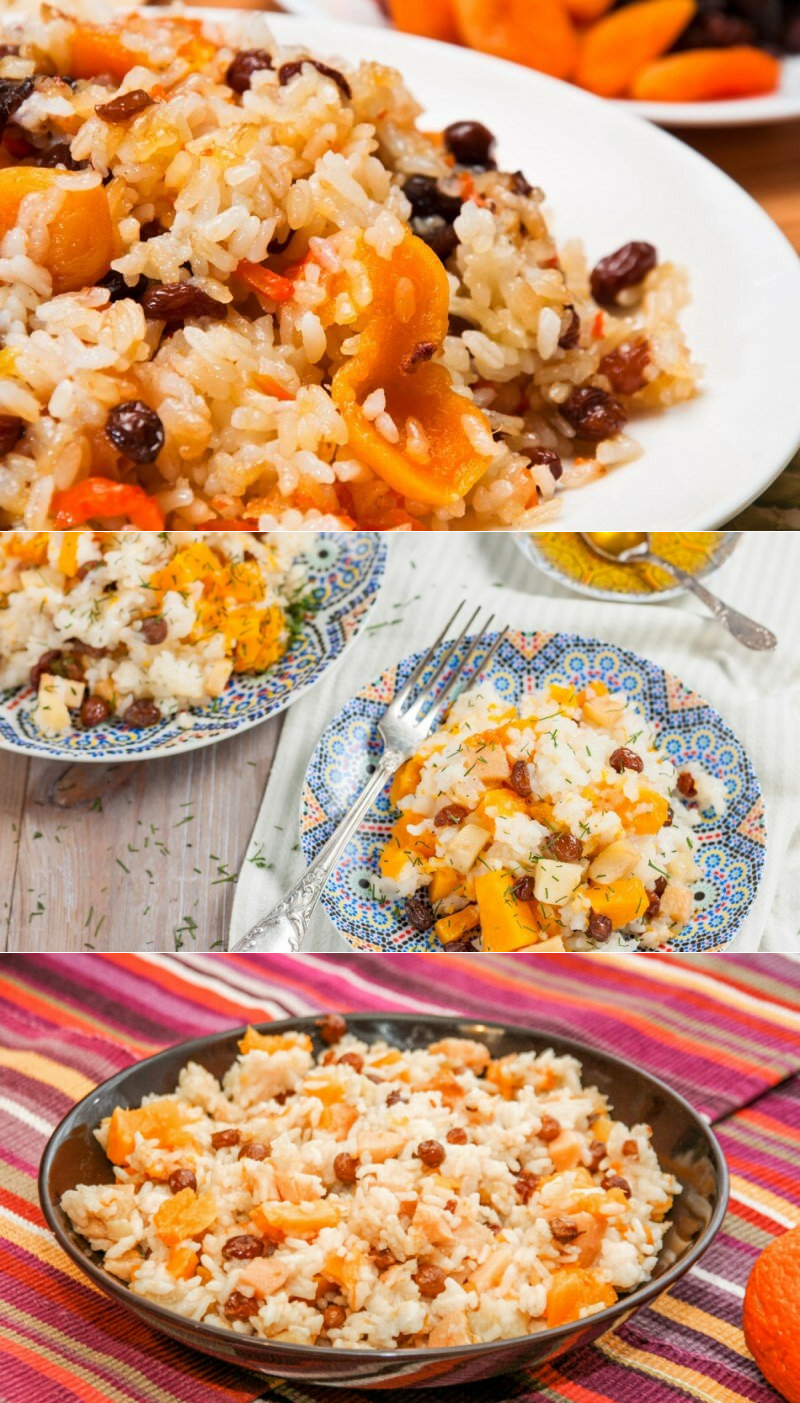 Необычный плов с тыквой и фруктами в горшочке
