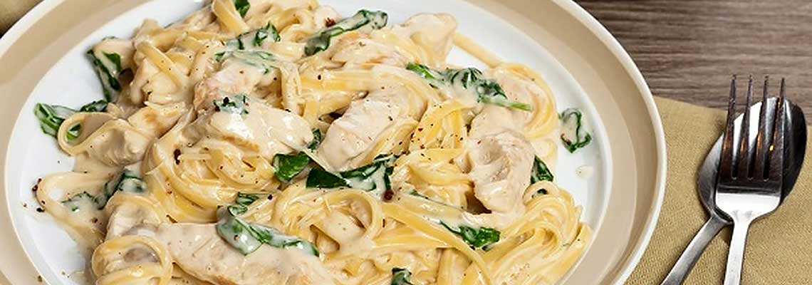 Спагетти с курицей в сметанном соусе • Рецепт Ароматное спагетти с курицей и сыром в сметанном соусе очень сытное и вкусное.