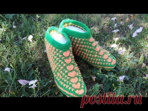 "МАНДАРИНКИ"/МК ЧАСТЬ 2/ТАПОЧКИ-СЛЕДОЧКИ С ВЕЕРАМИ НА ДВУХ СПИЦАХ БЕЗ ШВОВ