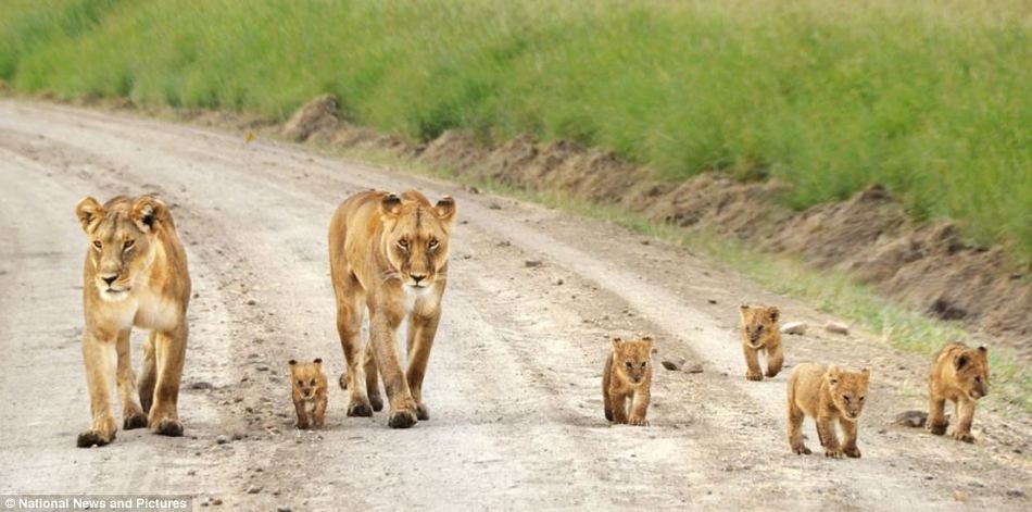Львицы на прогулке со своими детенышами в заповеднике Масай Мара