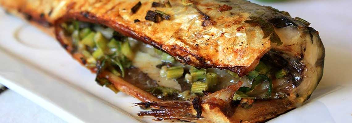 Запеченная скумбрия по-новому с овощами • Рецепт Вкусная и нежная запеченная скумбрия по-новому с овощами вам понравится пикантным ароматом, который придают специи и приправы.