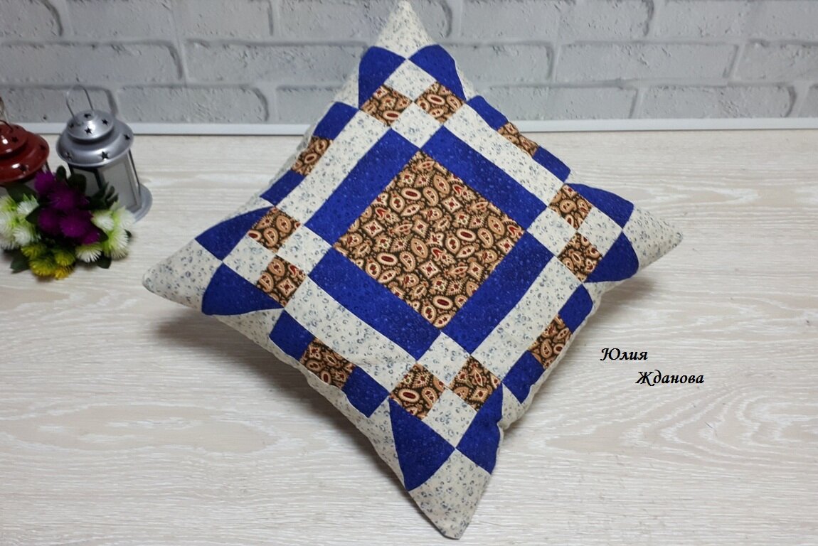 Маленькие обрезки ткани превращаются в красивую диванную подушку. Подробный мастер класс и схема лоскутного рисунка.